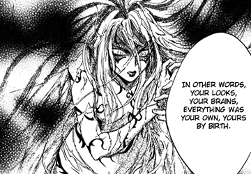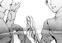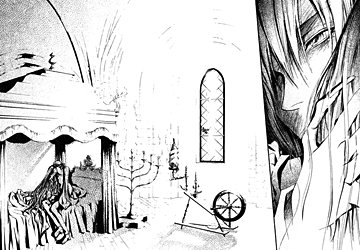 The original fairy tale is usually interpreted as an account of menstruation and female chastity, or sexual awakening. Kaori Yuki’s retellings in Ludwig Revolution focus on the female figures of Grimms’ fairy tales, and although they mainly seek to entertain with a good story, many of them — at least during the first half of the series — aim to give those figures a voice. Blanche in Snow White and Idike in Little Briar Rose are the best examples of this, as their original counterparts are noted for being very passive princesses, waiting for true love’s kiss to wake them from their unnatural slumber.